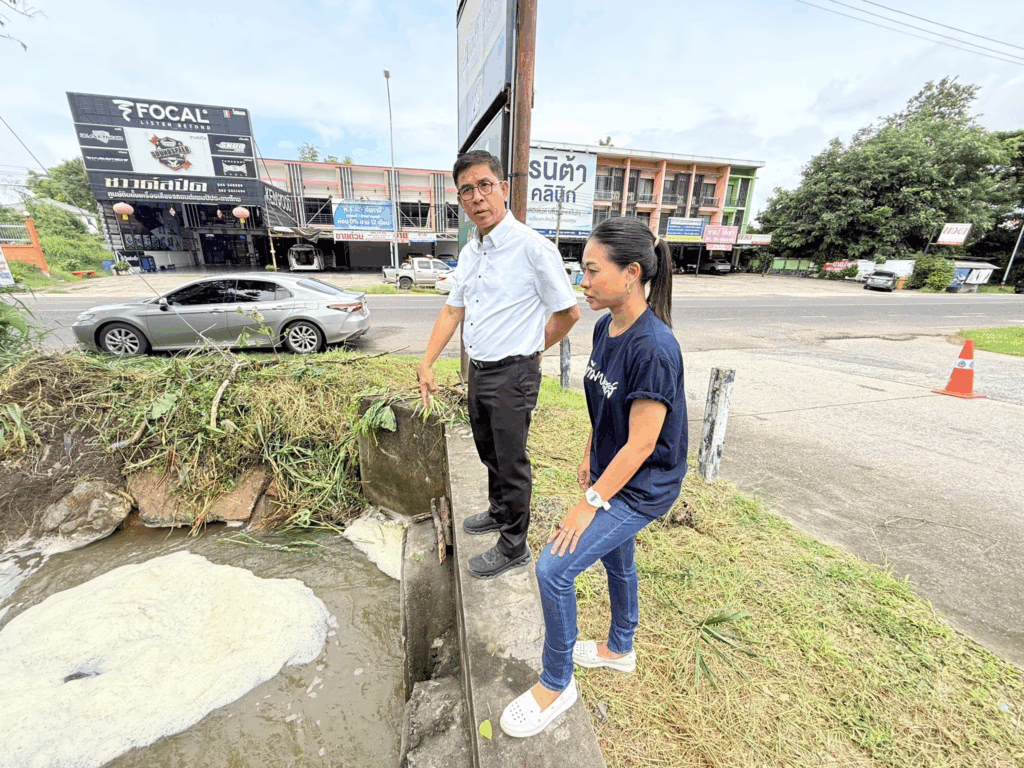 ลงพื้นที่ตรวจสอบการระบายน้ำในหมู่ที่ 5 บ้านบุญเรือง